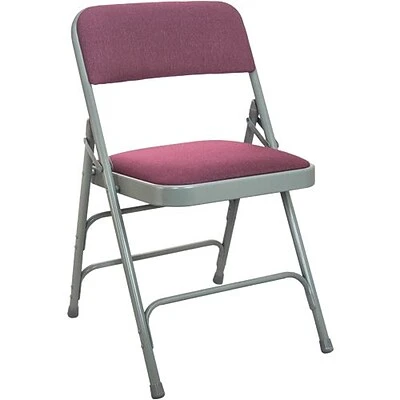 These heavy-duty padded folding chairs are produced with high quality materials and strict attention to durability. Each fabric padded folding chair features a 1-in. padded seat for additional comfort over standard metal folding chairs and are well suited for longer periods of sitting. The durable fabric padded seats and backs on each chair also provides insulation from hot and cold surfaces usually found on standard folding metal chairs.