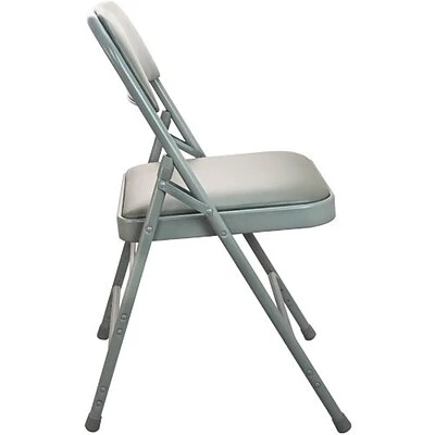 These heavy-duty vinyl padded folding chairs are produced with high quality materials and strict attention to durability. Each vinyl padded folding chair features a 1-in. padded seat for additional comfort over standard metal folding chairs and are well suited for longer periods of sitting. The durable vinyl padded seats and backs on each chair also provides insulation from hot and cold surfaces usually found on standard folding metal chairs.