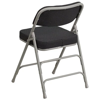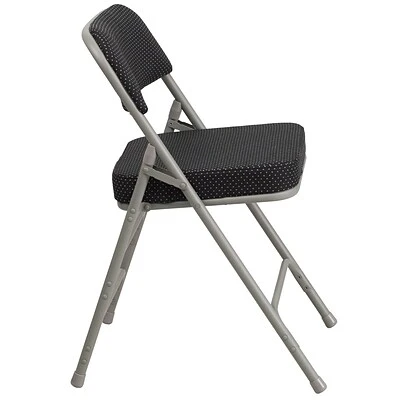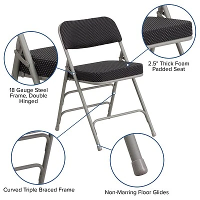 Folding chairs are a practical choice for social activities and for everyday use in the home. Folding chairs offer a simple and compact storage solution. This portable chair can be used in a variety of indoor or outdoor events. This HERCULES Folding Cha ir was built to take on heavy usage with an 18 gauge steel frame, triple braces and leg strengthening support bars. The non-marring floor glides keep floors scratch-free for your indoor occasions. This chair was designed to keep you comfortable with an extra thick padded seat and back. After an event you can stack them on top of each other or in a row. To make transporting even easier, equip yourself with the appropriate sized folding chair dolly to make event management more effortless.