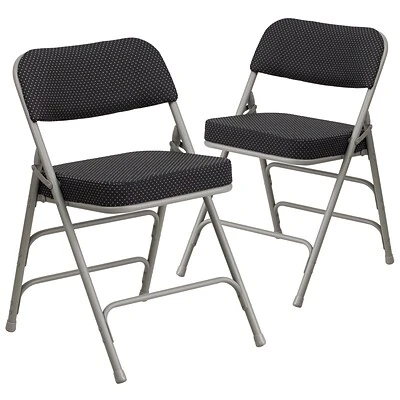 Guests will be amazed in the comfort of this Flash Furniture HERCULES Series ultra-padded upholstered metal folding chair. Whether you have planned for your guest’s arrival or had a sudden influx of family show up on your doorsteps, you’ll be well prepared with this padded folding chair. The chair provides comfort during extended meetings and social gatherings. Its 18-gauge curved powder-coated steel frame is triple-braced and double-hinged with leg-strengthening support bars to hold up to 300 lbs. Nonmarring floor glides on the legs protect your floors by sliding smoothly when you move it. Built for commercial use, this attractive chair is a smart seating solution for your next business meeting as well as in the home for family gatherings and other social events. After outdoor events, store indoors to protect the frame from extreme moisture. With nothing to assemble, this chair comes ready to service your needs.