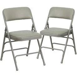 Host Thanksgiving at your house and leave out “bring your own chair” on the invite. Flash Furniture has got you covered with this two-pack of padded folding chairs. Each of these heavy-duty steel folding chairs is built for commercial businesses who host a myriad of events and need to accommodate people of varying sizes. Portable chair is perfect in community centers to transport from storage to venue floor. Change the scenery with this outdoor metal chair by taking the party outside. Take care of your chair, so it lasts you many years by storing indoors. Its 18-gauge curved steel frame is triple-braced with leg strengthening support bars to hold up to 300 lbs. while the nonmarring floor glides protect your flooring from scuffs and scrapes. Celebrate all family events at your home for guests to sit comfortably atop these upholstered folding chairs. The chairs come assembled to be of service as soon as they’re delivered.