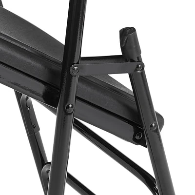 Our 1 1/4″ folding chairs feature our double contoured back, double hinges, TWO double-riveted U-shaped cross braces, non-marring glides, and V-Tip stability caps