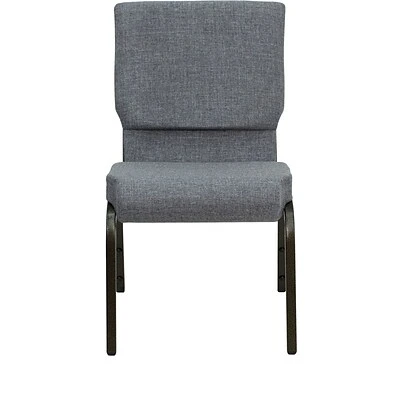Flash Furniture HERCULES™ 18.5” Wide stacking church chair with durable gray fabric upholstery has 4.25″ thick seat. Chair with gold vein frame has 800 lbs capacity and ganging clamps, sold as 20 per pack.