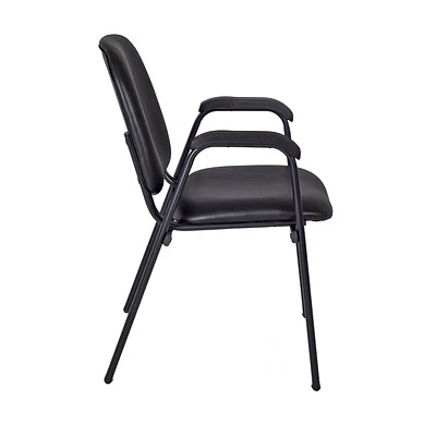 Regency’s Ace stack chair is more than just a basic stack chair. It features a comfortable padded seat and back upholstered in a stylish black vinyl. Cushioned black armrests top a black tubular steel frame. The Ace looks great in training rooms, waiting rooms or reception areas, labs, or as a guest chair in private offices. The Ace stores away easily in stacks of 8. The Ace ships assembled and is ready to use right out of the box. All Regency chairs are backed by a 5-year limited manufacturer’s warranty on chair bases and frames and a 2-year limited manufacturer’s warranty on chair mechanisms and upholstery.