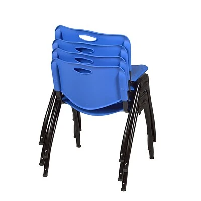 The “M” stack chair by Regency offers durability, style and value. This sturdy,lightwieght stack chair is ideal for cafeterias, lunch rooms and break rooms and is available in Blue, Black, Burgundy and Grey finishes. Its black metal frame and contoured plastic seat and back are strong and easy to clean. This versatile stack chair easily stores away in stacks of 12 and features a built in handle for easy mobility. The “M” ships assembled and is ready to use right out of the box.All Regency chairs are backed by a 5-year limited manufacturer’s warranty on chair bases and frames.
