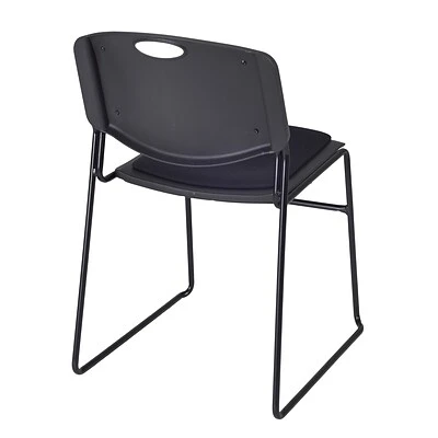 Regency’s Padded Zeng stack chair is not only unique, but durable, sturdy and versatile as well. The sturdy black Polypropylene seat and back are covered in a black cushion for a more comfortable chair. Perfect for breakrooms, classrooms, waiting areas and more, the Padded Zeng is a great choice when you need both comfort and durability. A reinforced black metal frame is designed to support up to 400lbs and a built in handle makes moving the chair easier. The Zeng can be easily stored away in stacks of 25 and can be used with Regency’s Zeng Stack Chair Cart for easy transportation. The Zeng ships assembled and is ready to use immediately. All Regency chairs are backed by a 5-year limited manufacturer’s warranty on chair bases and frames and a 2-year limited manufacturer’s warranty on chair mechanisms and upholstery.
